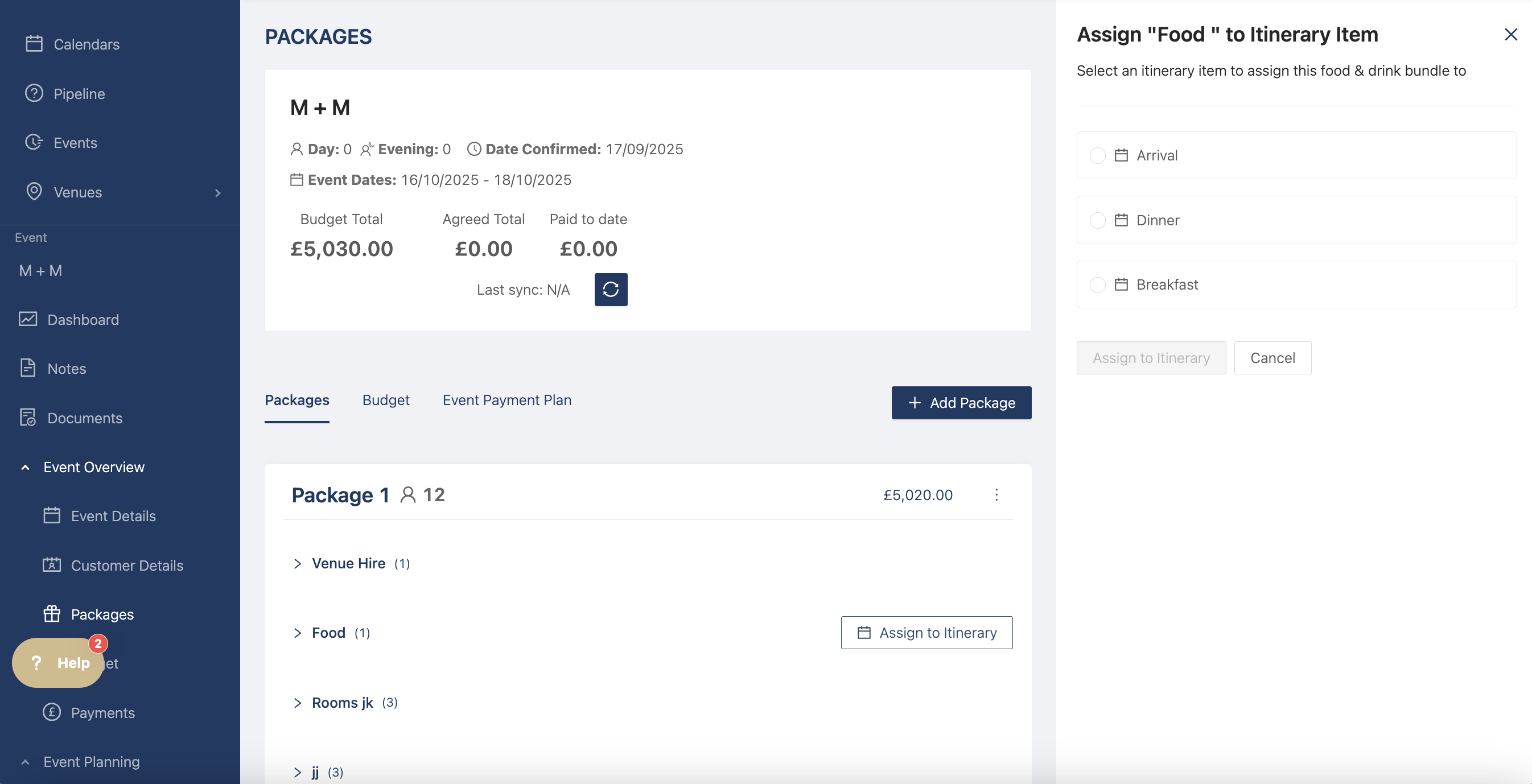 If you have any food and drink categories, you can now assign them to the correct itinerary item by clicking on "Assign to Itinerary"