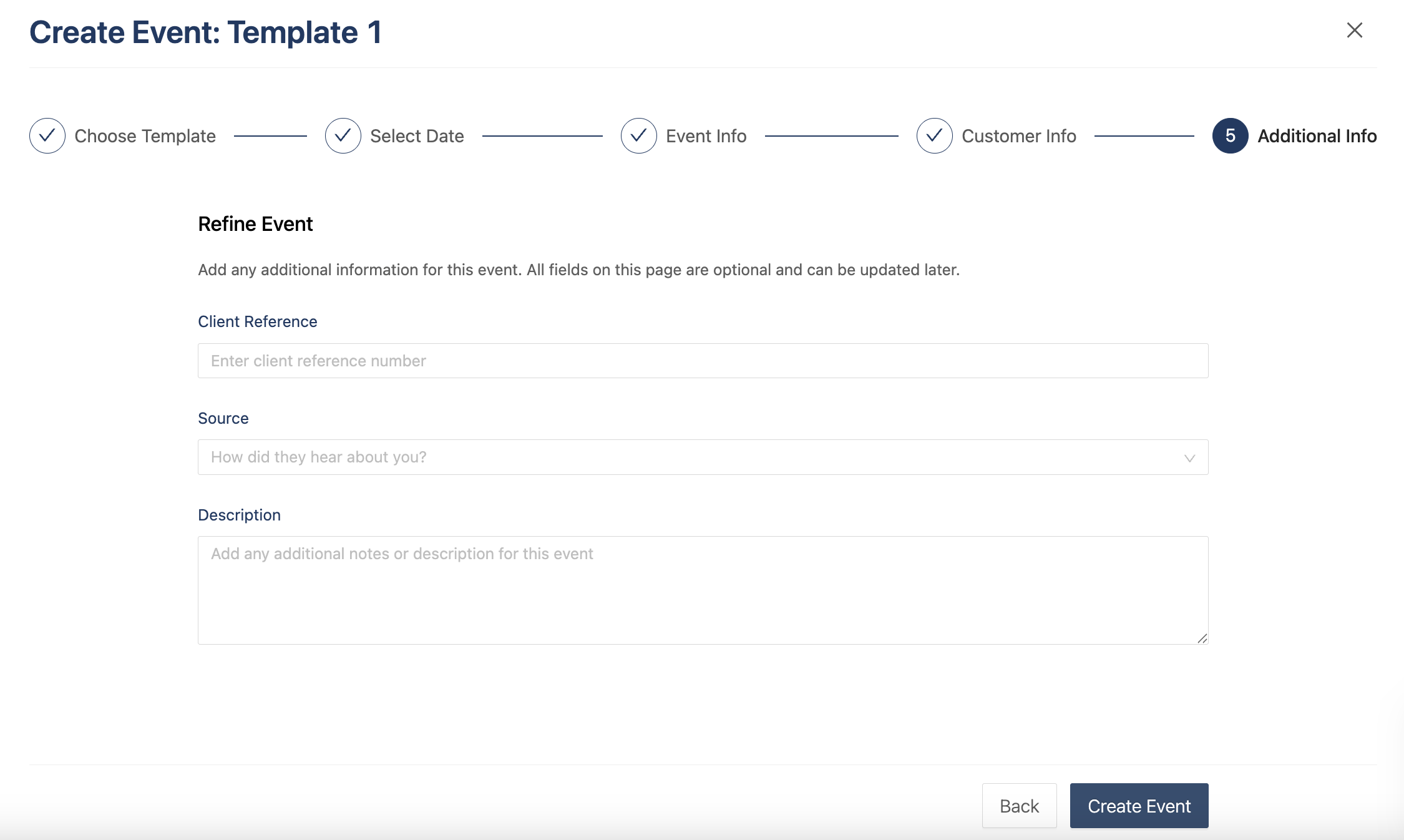 Add a client reference, source, or description of the event.
