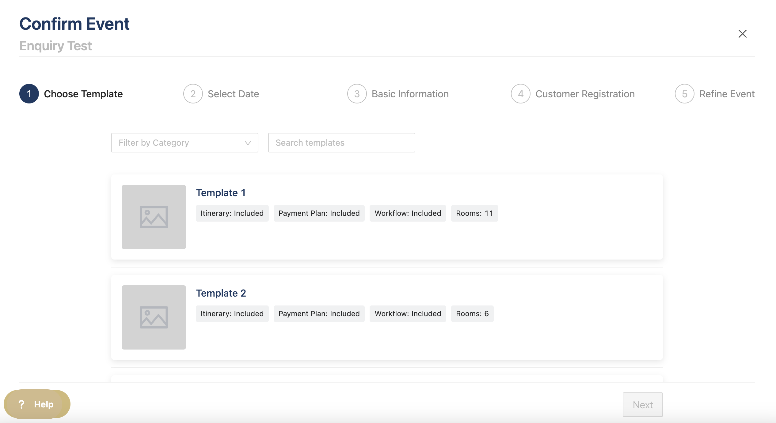 You can then choose to create the event using a template or from scratch