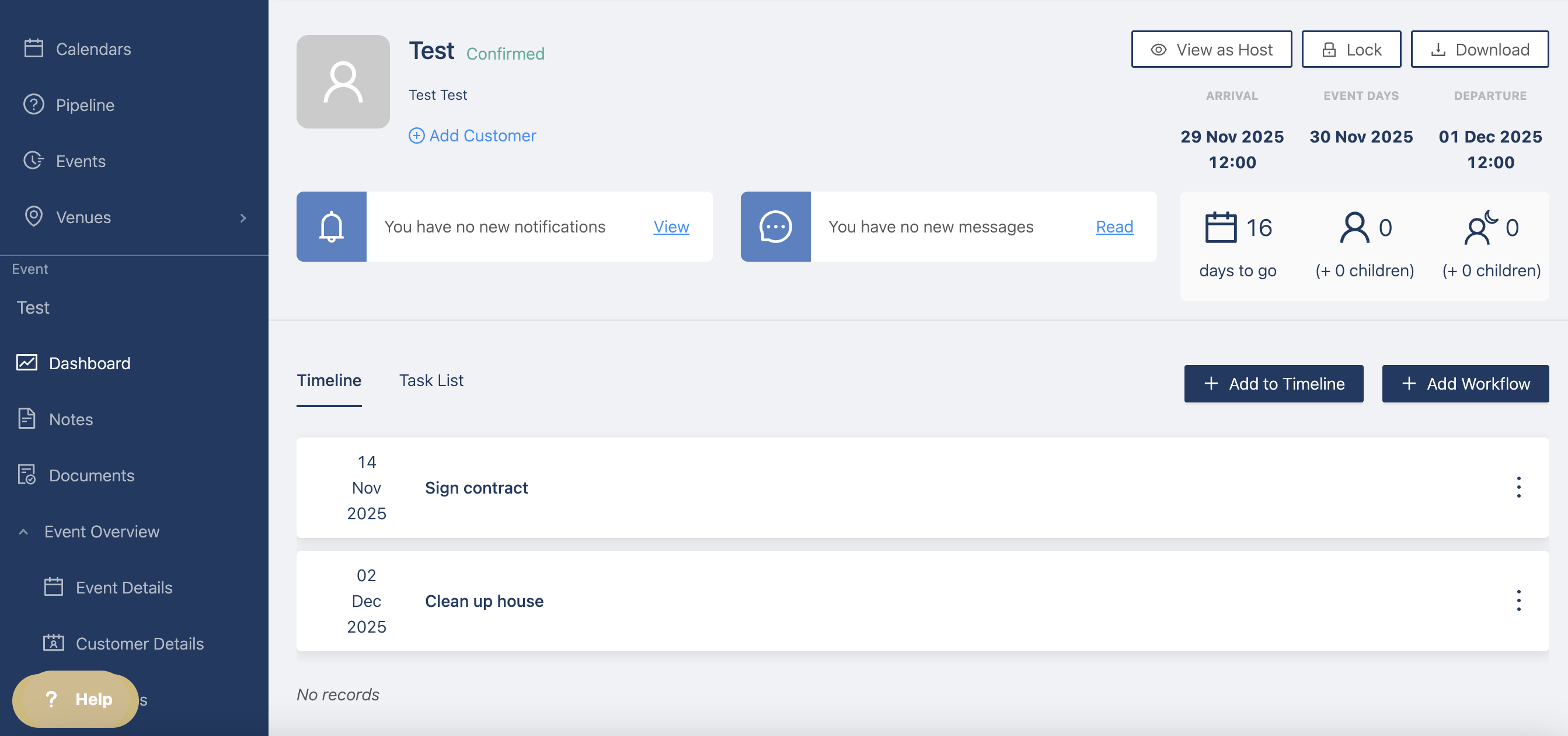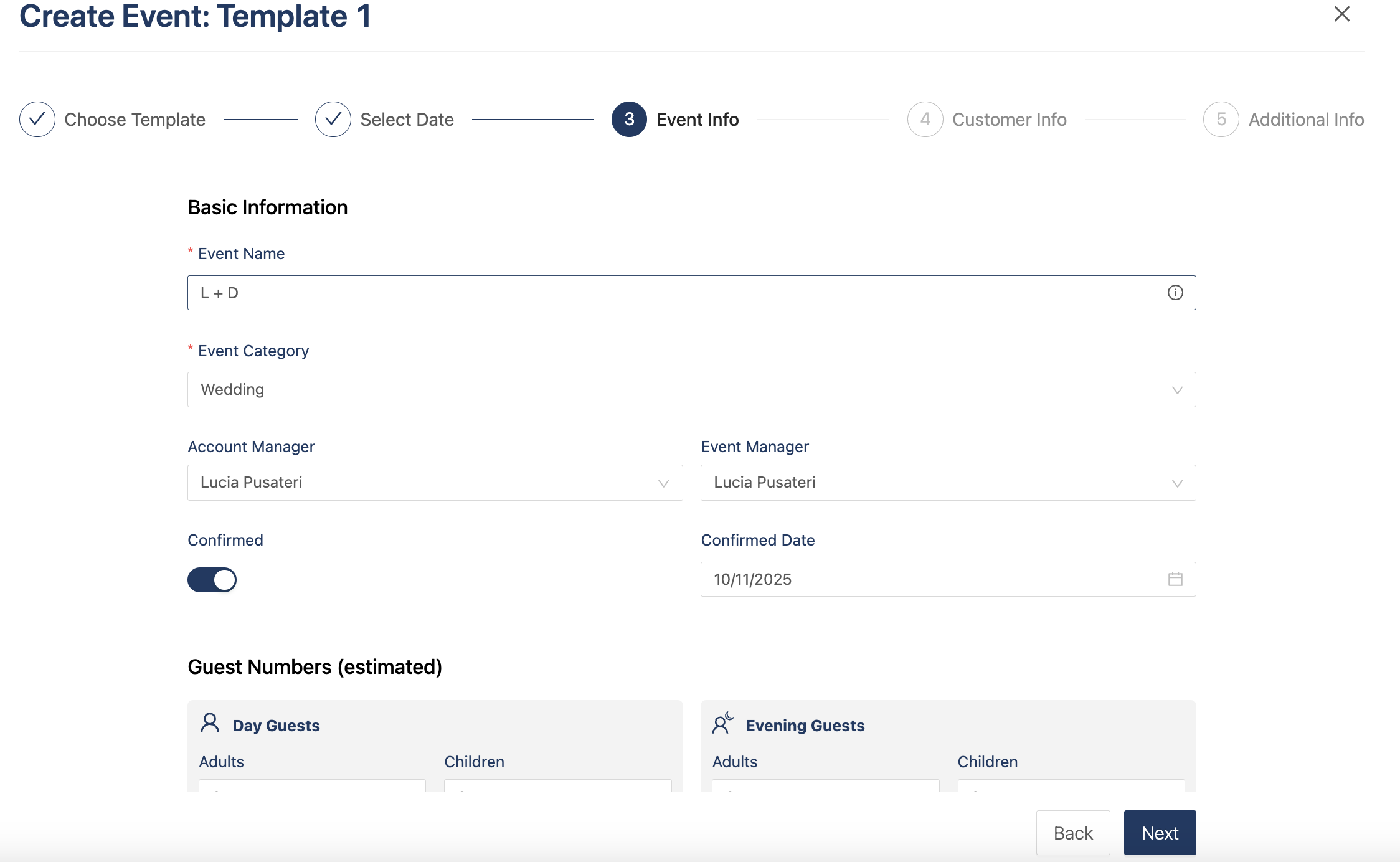 You will then be redirected to your new event with all the items you added to the templates.