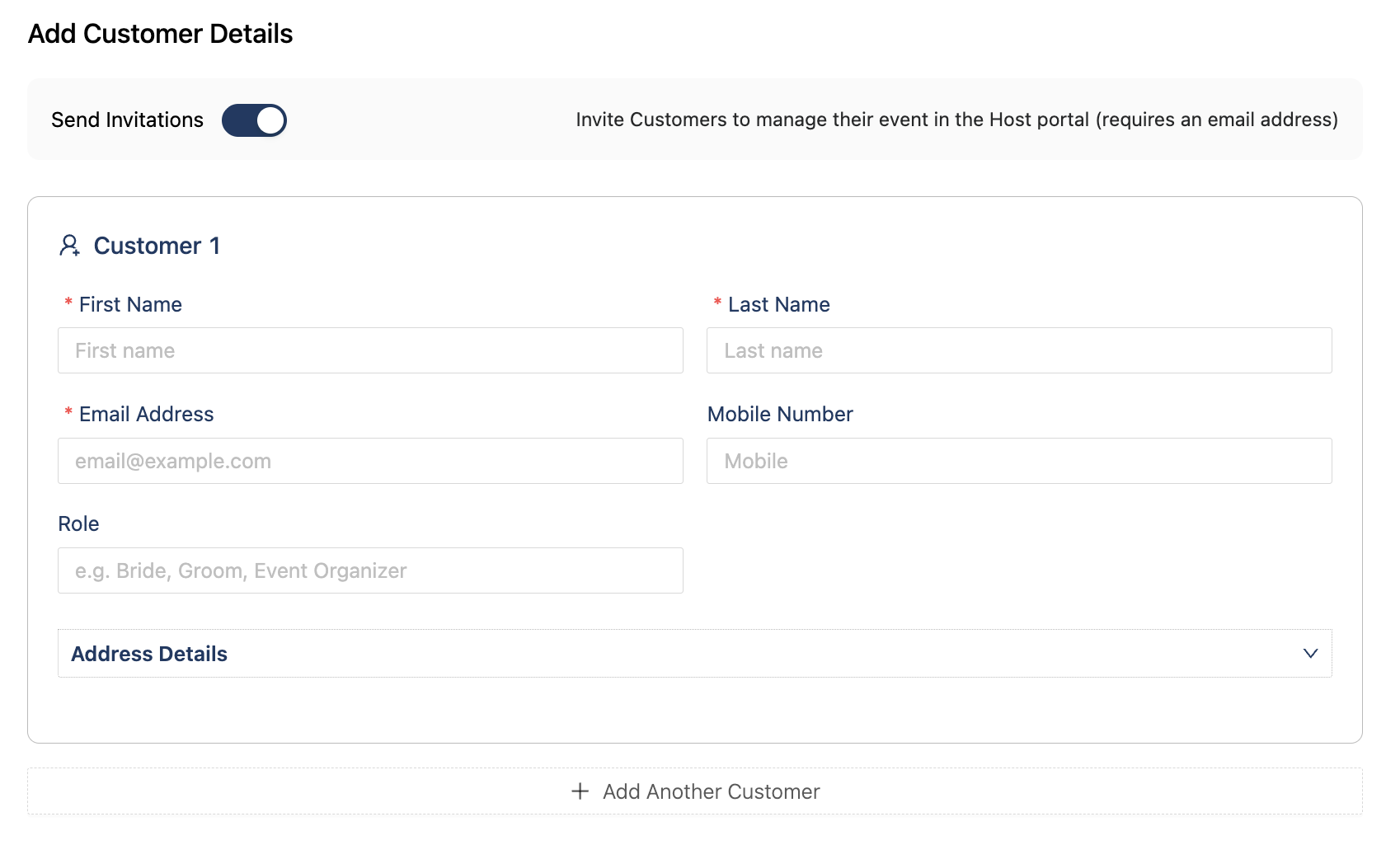 Once you've selected your dates, you can add all the following details: