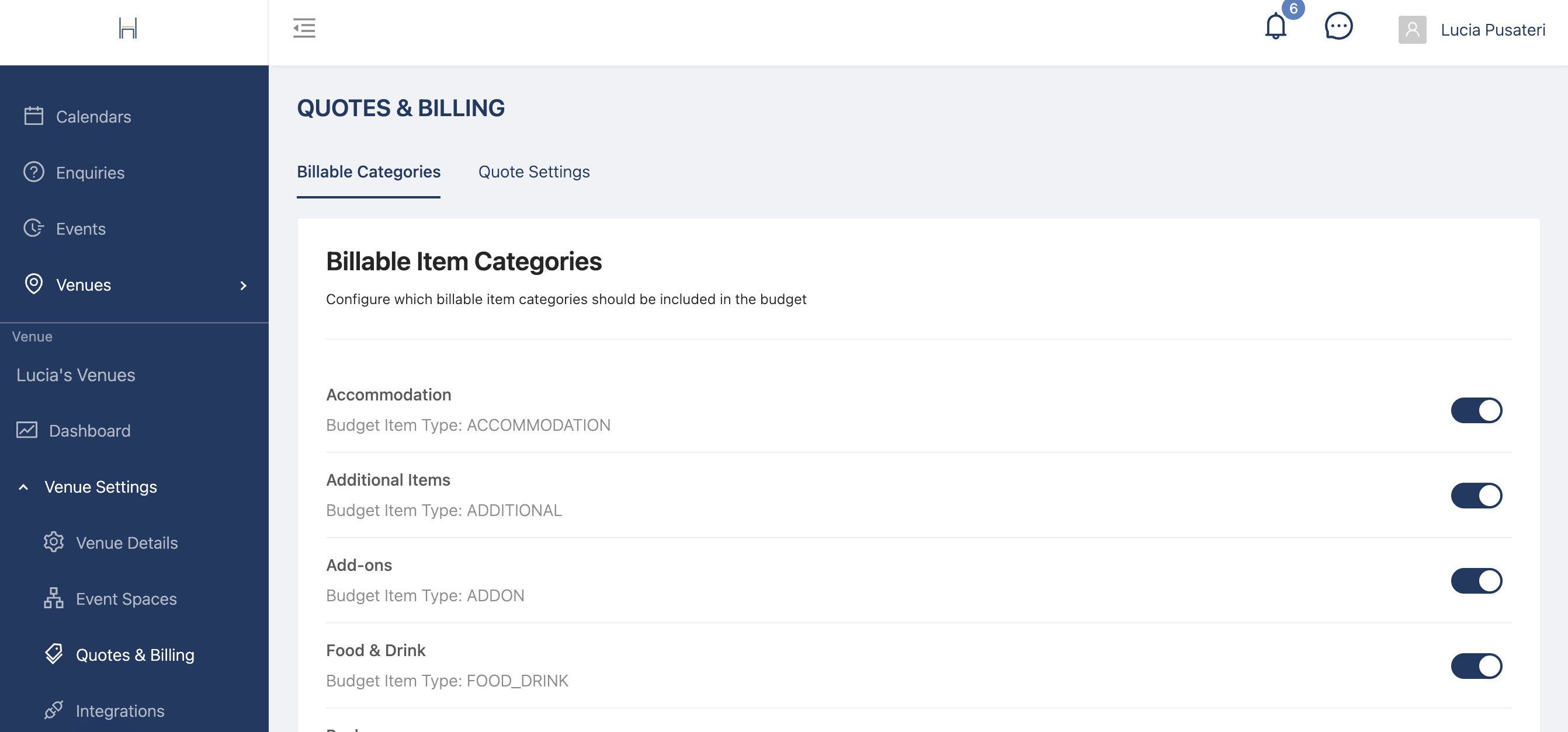 Head to your venue, under venue settings, and click billable item categories and toggle off the categories you want to hide from your budget from your hosts.