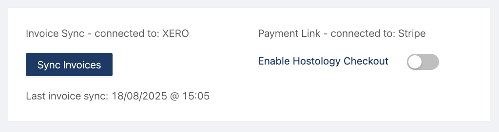 You can sync all of your invoices to Xero and enable Hostology Checkout if you're connected to Stripe.