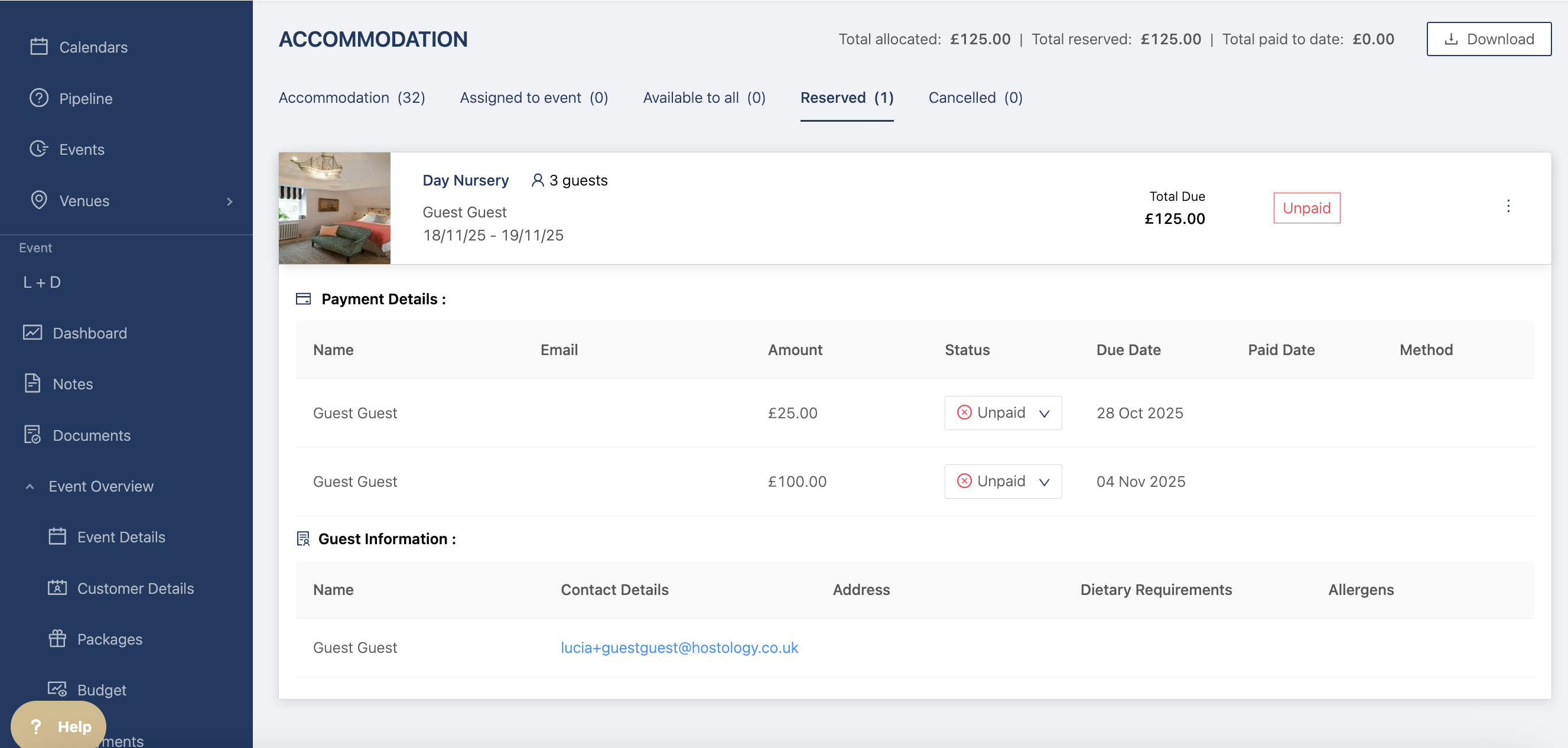 Once it's been booked by the guest, the room will show the payment instalments on the reserved page so you can track the different payments made my guests and hosts.